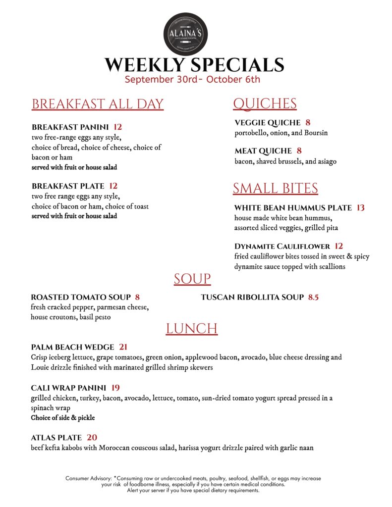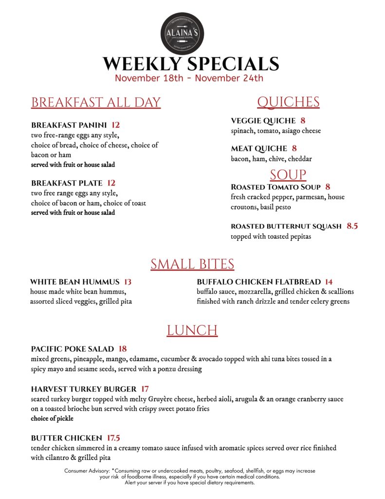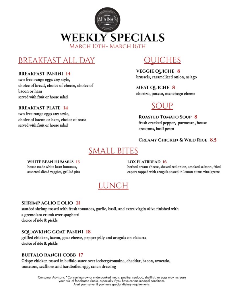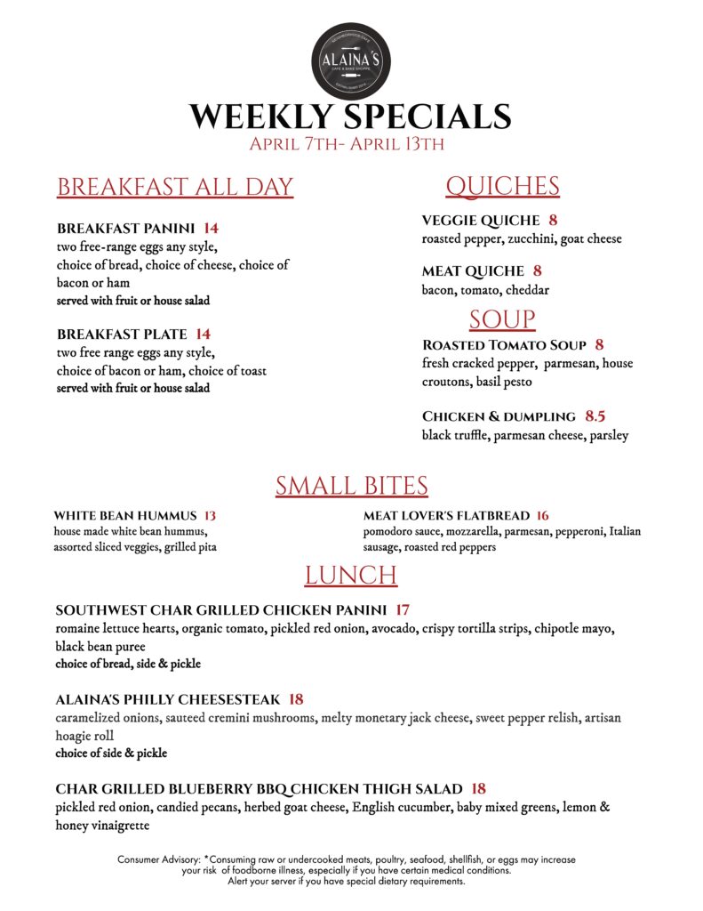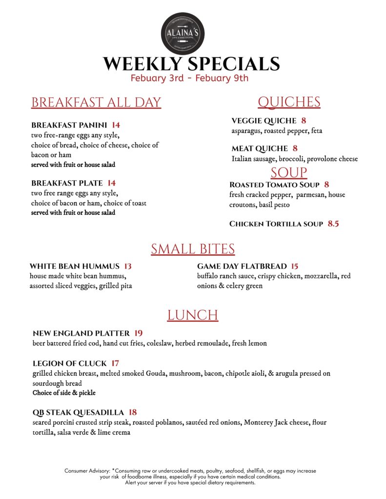 Specials Menu